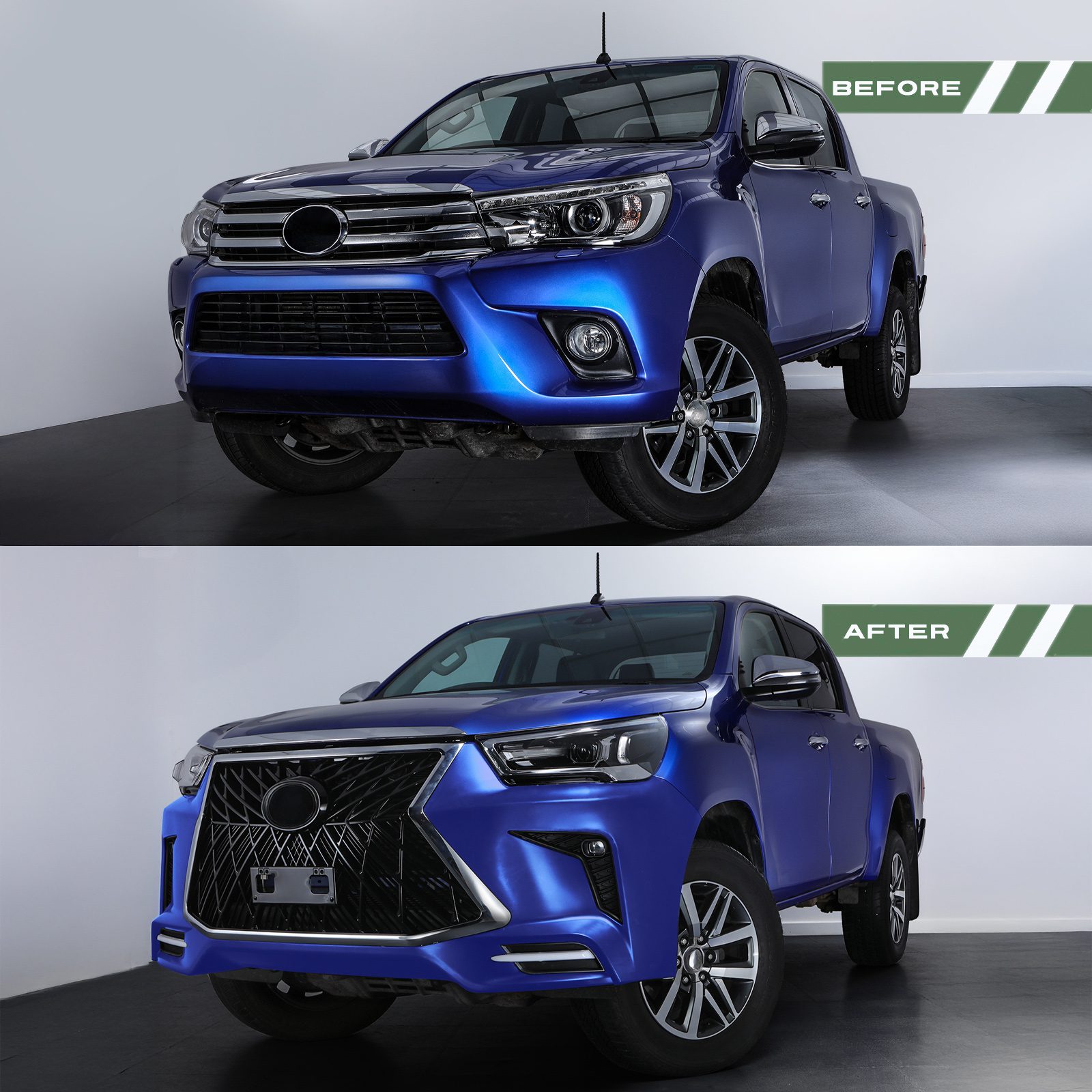 Transform your vehicle with our Predator4x4 Lexus Style Bumper Conversion, designed to enhance your ride’s rugged appeal with aggressive styling. Built for durability and ease of installation, this kit effortlessly elevates your vehicle’s aesthetics by providing a Lexus look.
