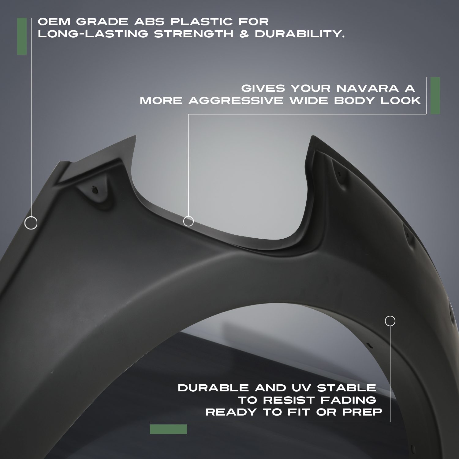 • Gives your Navara a more aggressive wide body look