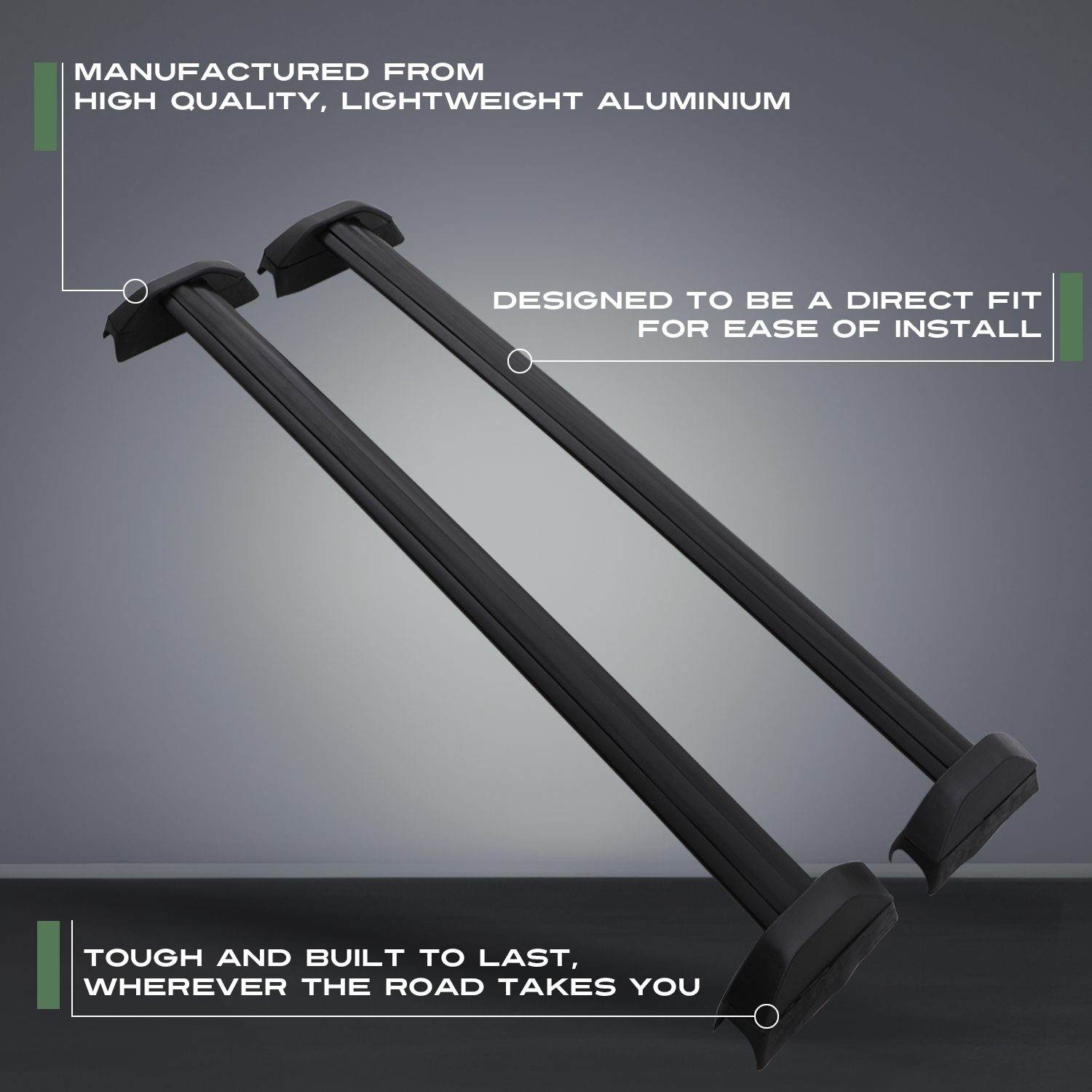 Please Note: These bars are only suitable for vehicles with factory OEM roof rails with NO gap. These bars mount directly to the top of your existing rail.