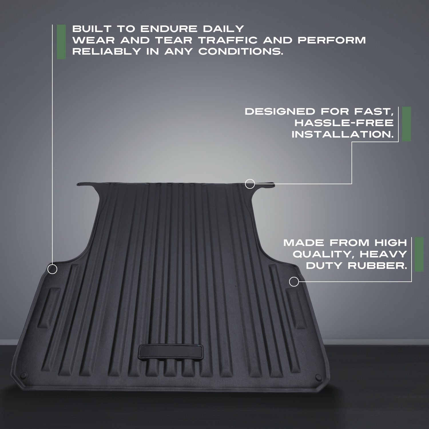 • Our truck bed mat provides a protective layer between your cargo and the truck bed, shielding it from scratches, dents, and rust